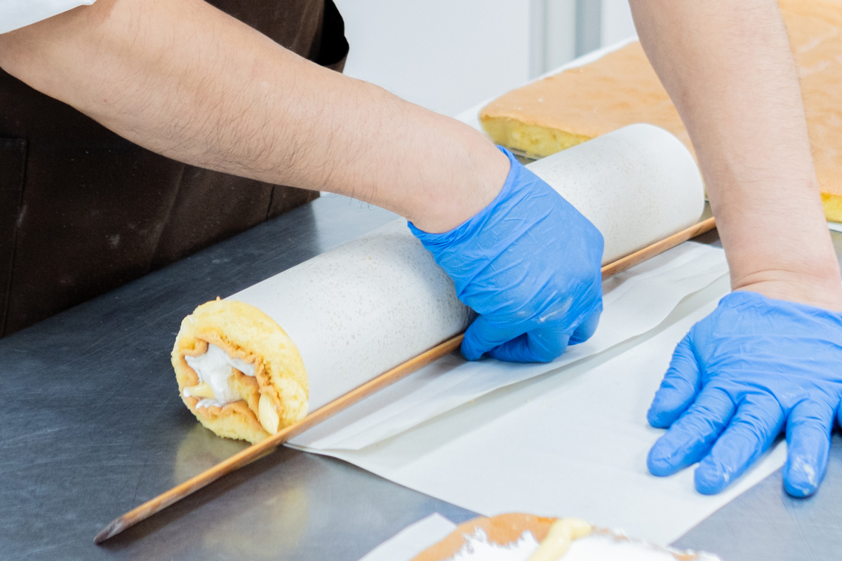 ロールの形を整えたら、1 本ごとにカットしてそのまま冷凍。できたてのおいしさを閉じ込めた状態でお届けします。