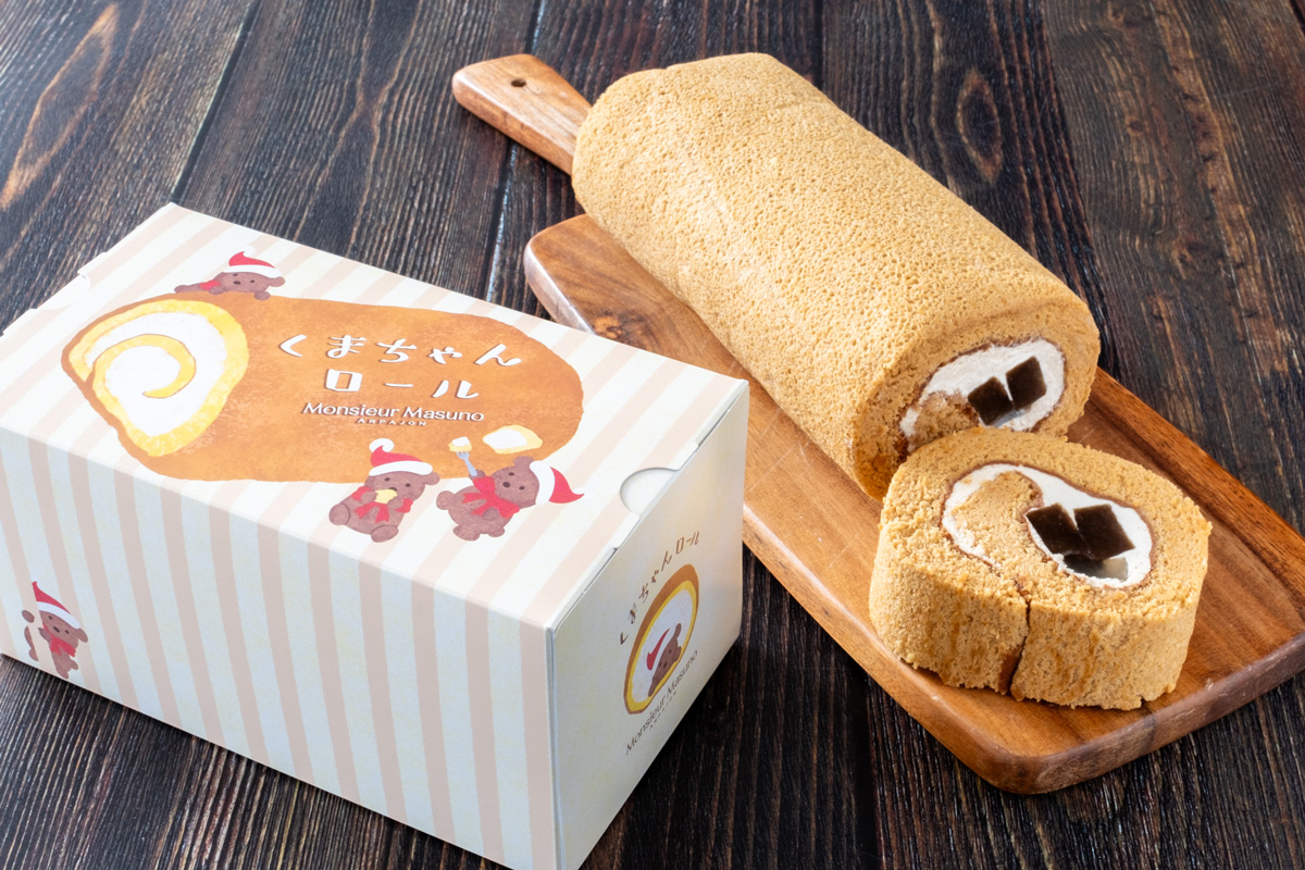 アルパジョン自慢の「くまちゃんロール」は、卵の風味豊かなふわふわスポンジに、オリジナルブレンドの生クリームに黒糖の風味をプラスしてやさしく巻き上げました。